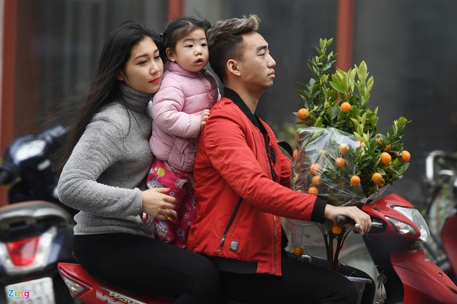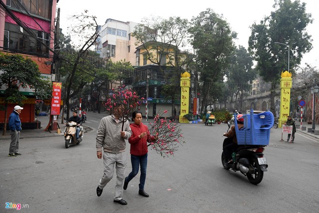 Sáng 14/2, phố phường Hà Nội bắt đầu vắng vẻ dần trong ngày đầu hàng triệu người nghỉ Tết. Các chợ hoa trở nên lãng mạn, nhiều gia đình bắt đầu dạo chơi tận hưởng không khí xuân.
