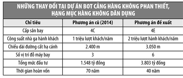 Cụ thể, Hợp đồng BOT Dự án Đầu tư xây dựng công trình Sân bay Phan Thiết, hạng mục hàng không dân dụng số 2741/HĐ.BOT-UBND ngày 20/9/2016 được ký kết giữa UBND tỉnh Bình Thuận và Công ty cổ phần Rạng Đông đã trao quyền đầu tư cho doanh nghiệp này với thời gian thu phí hoàn vốn là 70 năm, thời gian xây dựng 3 năm, dự kiến khởi công năm 2015, hoàn thành năm 2018.