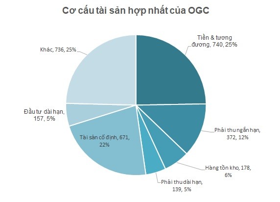Tại thời điểm 31/12/2022, tổng tài sản và vốn chủ sở hữu của OGC đạt lần lượt là 2.993 tỷ đồng và 1.067 tỷ đồng.