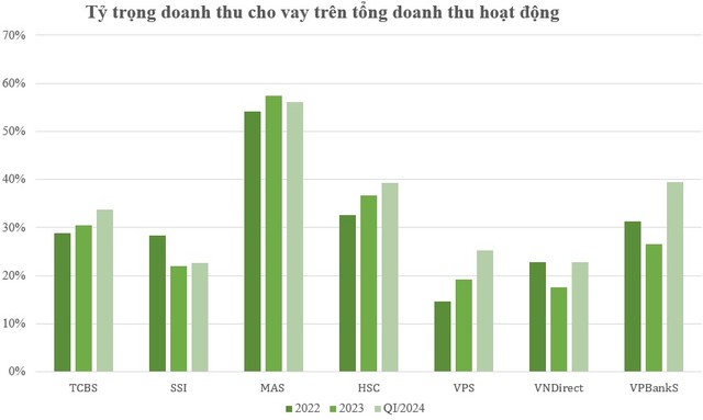 Xét về tỷ trọng, ở thời điểm hiện tại, mảng cho vay margin thường chiếm khoảng 1/3 doanh thu hoạt động CTCK. Nghiệp vụ này tại VPBankS dần trở nên quan trọng khi đạt tỷ lệ tương đương các đơn vị khác như TCBS, SSI, HSC và đang có xu hướng nhích lên trong quý I/2024.