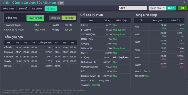 Tiếp theo là biểu đồ intraday và biểu đồ phân tích kỹ thuật của cổ phiếu được cập nhật theo các khung thời gian khác nhau, từ 1 phút cho tới 1 tháng, phân tích kỹ thuật ngay trên bảng giá, giúp người dùng thao tác một cách nhanh chóng.