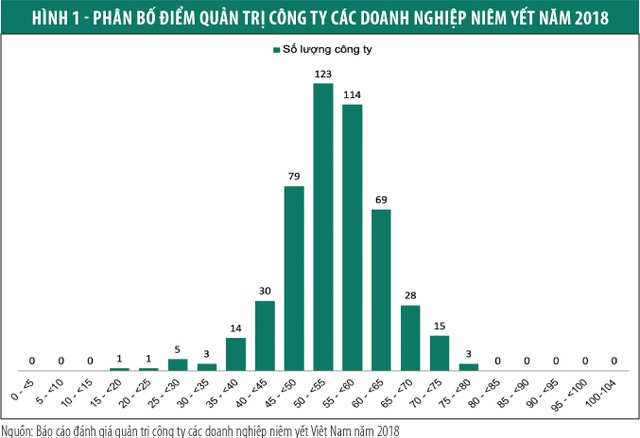 Điều này cho thấy, với bộ tiêu chí QTCT Việt Nam, các doanh nghiệp niêm yết cần có nhiều cố gắng để đạt được các mức điểm cao về QTCT, ngay cả đối với nhóm doanh nghiệp có điểm cao nhất hiện đang nằm ở khoảng điểm 75 - 80 điểm.