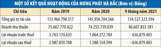 Nhận định trên của Đạm Hà Bắc dường như chưa sát với thực tế. Theo báo cáo kết quả kinh doanh 9 tháng đầu năm 2021 mà Hưng Phát Hà Bắc tự lập, doanh thu thuần của Công ty đạt 46,6 tỷ đồng, giảm 16% so với cùng kỳ năm 2020; lợi nhuận gộp đạt 4,3 tỷ đồng, giảm 58%. Mặc dù các chi phí đều được giảm so với cùng kỳ, nhưng Hưng Phát Hà Bắc ghi nhận lỗ sau 3 quý đầu năm là 637 triệu đồng, trong khi cùng kỳ năm ngoái lãi ròng 3,1 tỷ đồng.