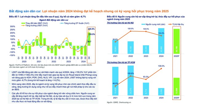 Nhận định về triển vọng của bất động sản dân cư năm 2025, theo các chuyên gia tới từ FiinTrade, đây là nhóm ngành có kỳ vọng hồi phục sớm nhờ các chính sách thúc đẩy đầu tư công, tín dụng địa ốc cởi mở cũng như nỗ lực đẩy nhanh gỡ vướng pháp lý cho các doanh nghiệp, dự án.