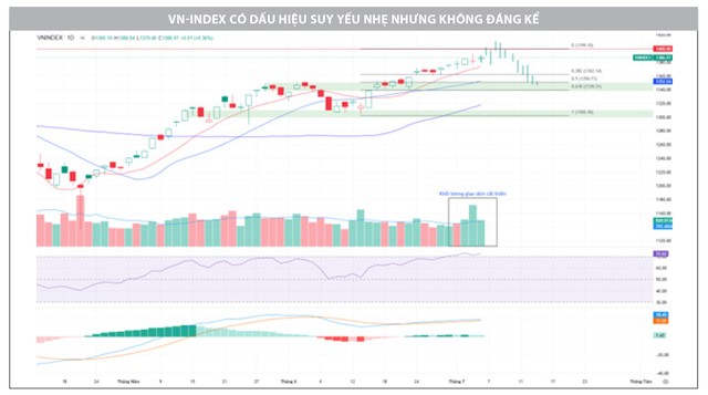 Sau ngày 9/7, chúng tôi đánh giá, có cơ sở để thị trường tiến tới mốc cao hơn, nhưng trước đó, khả năng có một đợt điều chỉnh là khá cao, do nhiều cổ phiếu đã vào trạng thái quá mua hoặc đã tăng tốt từ đáy.