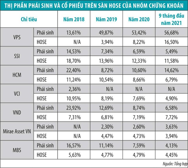 Có thể thấy, mặc dù các sản phẩm phái sinh, chứng quyền hay tư vấn phát hành trái phiếu không phải nguồn thu chính của các công ty chứng khoán có thị phần lớn, nhưng nhờ tận dụng cơ hội cũng như quan tâm thị trường ngách mà các công ty chứng khoán có thị phần lớn chưa khai thác, các công ty chứng khoán có thị phần nhỏ đã vươn mình.