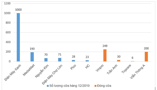 Biểu đồ số lượng cửa hàng điện máy tính đến tháng 12/2019.