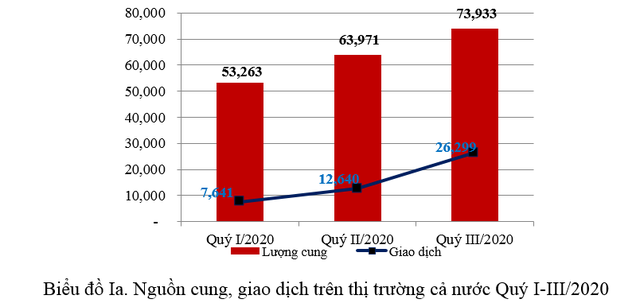 Theo ghi nhận của VARS, quý III/2020, cả nước có 73.933 sản phẩm bất động sản nhà ở được bán trên toàn thị trường (gồm 46.773 căn hộ chung cư và 27.160 sản phẩm thấp tầng).