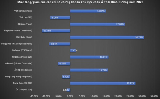 Ở những nơi khác, chỉ số chứng khoán Kospi của Hàn Quốc cũng có mức tăng mạnh mẽ với mức tăng hơn 30% trong năm 2020.