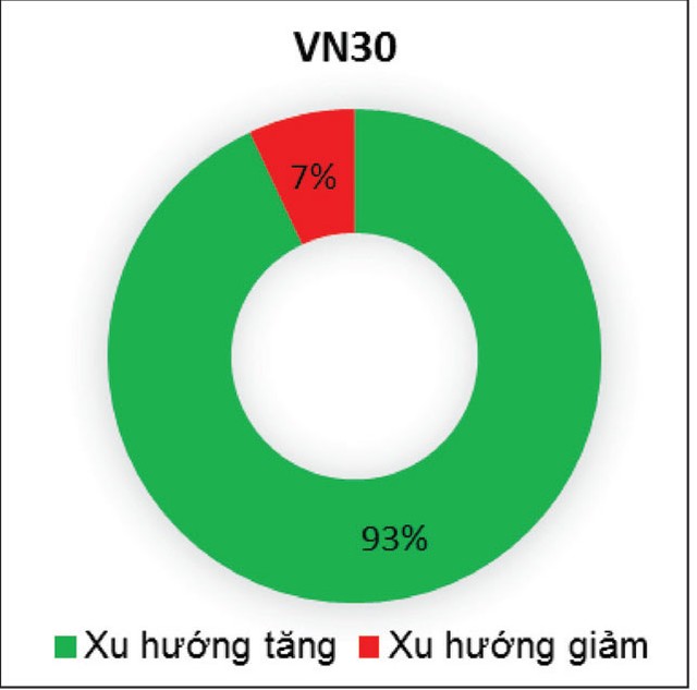 Đi sâu vào vận động các nhóm ngành theo vốn hóa trụ đỡ thị trường hiện nay, nhóm cổ phiếu lớn thuộc VN30 vẫn đang có diễn biến tăng giá tích cực. Ưu thế tăng điểm vượt trội trong nhóm đang phản ánh việc chỉ số VN-Index tăng điểm nhờ các trụ đỡ cổ phiếu vốn hóa lớn VN30 nằm trong các nhóm ngành.