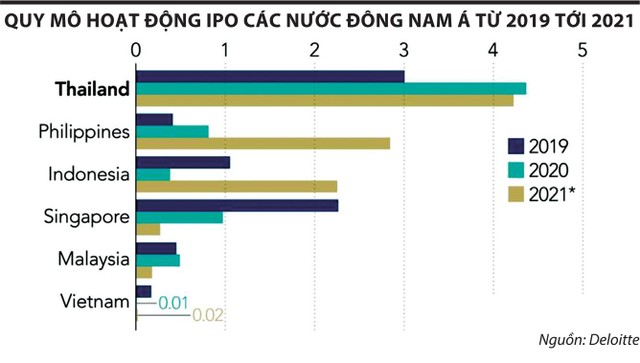 Theo ước tính của Deloitte, từ đầu năm đến nay, thị trường chứng khoán Việt Nam chỉ huy động được 20 triệu USD thông qua IPO, trong khi Thái Lan huy động được 4,2 tỷ USD.