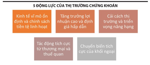 Phân tích từ thực tiễn thị trường và các chính sách kinh tế gần đây cho thấy, năm động lực then chốt có thể duy trì đà tăng trưởng của VN-Index trong thời gian tới.