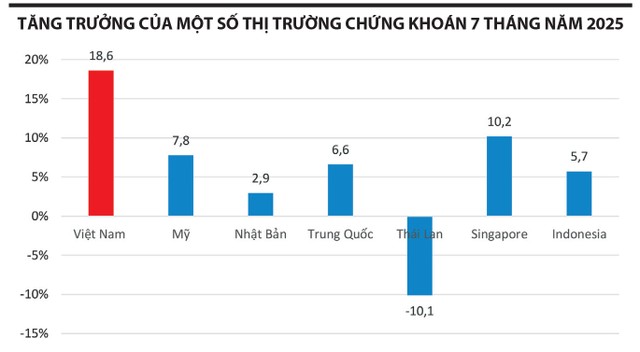 Từ đầu năm 2025 đến nay, thị trường chứng khoán Việt Nam duy trì đà tăng trưởng tích cực cả về điểm số, quy mô vốn hóa và thanh khoản. Kết thúc tháng 7/2025, chỉ số VN-Index đã chinh phục thành công ngưỡng 1.500 điểm khi đạt 1.502,5 điểm, tăng 18,6% so với cuối năm 2024. Đây là mức cao nhất trong hơn ba năm qua, đưa Việt Nam trở thành một trong những thị trường có tốc độ tăng trưởng cao nhất thế giới. Quy mô vốn hóa toàn thị trường đạt hơn 8,3 triệu tỷ đồng, tương đương 72,2% GDP năm 2024. Giá trị giao dịch bình quân vượt 900 triệu USD mỗi phiên, đưa Việt Nam trở thành thị trường có thanh khoản cao nhất khu vực ASEAN.