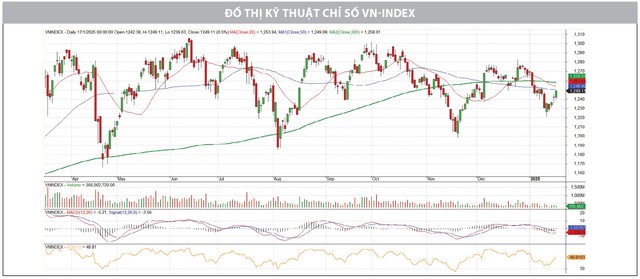 VN-Index duy trì đà tăng, được thúc đẩy bởi dòng tiền mạnh mẽ và sự đồng thuận của nhóm cổ phiếu vốn hóa lớn. Trong những phiên giao dịch gần đây, thị trường đã thể hiện sức bật đáng kể nhờ sự tập trung vào các nhóm ngành có câu chuyện tăng trưởng riêng biệt như công nghệ, cảng logistics, xây dựng và vật liệu xây dựng (được hỗ trợ bởi các dự án đầu tư công). Tuy nhiên, các nhóm ngành trụ cột, bao gồm ngân hàng, chứng khoán, bất động sản, hàng tiêu dùng, vẫn giữ vai trò quan trọng trong việc duy trì sự ổn định và dẫn dắt thị trường.