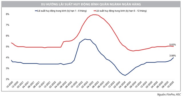 Trong tuần qua, chúng tôi nhận thấy các ngân hàng bắt đầu điều chỉnh tăng nhẹ lãi suất huy động ở nhiều kỳ hạn. Tuy nhiên, diễn biến này mang tính lành mạnh, chủ yếu nhằm bảo đảm nguồn vốn phục vụ chu kỳ giải ngân tín dụng cao điểm cuối năm, chứ không phải tín hiệu đảo chiều chính sách tiền tệ.
