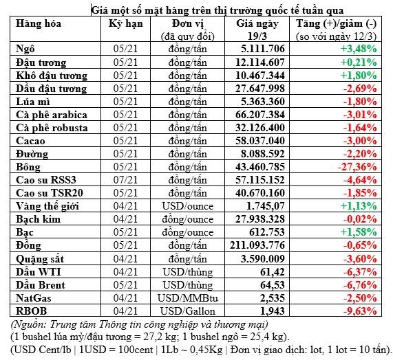 Thị trường ngô đã nhận được thông tin tích cực khi Bộ Nông nghiệp Mỹ (USDA) xác nhận đã bán thêm 800.000 tấn ngô cho khách hàng Trung Quốc trong ngày 19/3, đưa tổng khối lượng ngô Mỹ xuất khẩu trong tuần này lên 3,9 triệu tấn.