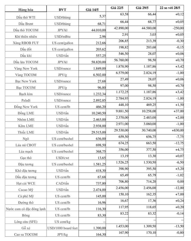 Giá một số mặt hàng trên thị trường quốc tế tuần qua