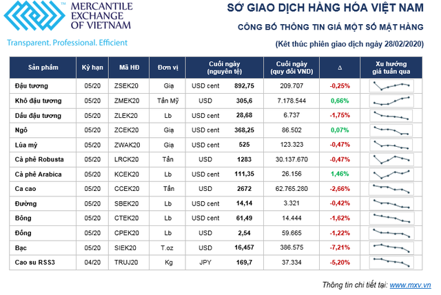 Thị trường hàng hóa tuần từ 24/2 – 28/2/2020: Giá đồng loạt giảm trên diện rộng