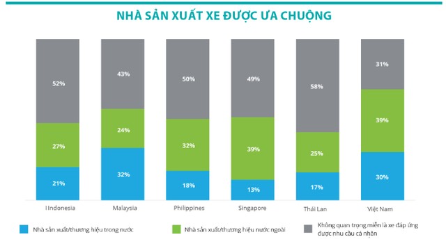 Sự yêu thích của người tiêu dùng với các thương hiệu xe trong nước và nước ngoài khác nhau giữa các thị trường Đông Nam Á, nhưng có một bộ phận người tiêu dùng không quá quan tâm đến thương hiệu, chỉ cần xe có các tính năng đáp ứng được nhu cầu.