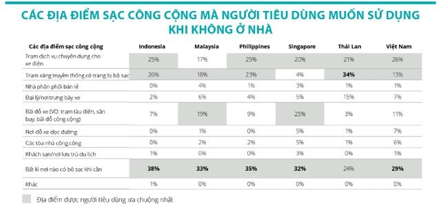 Về thời gian sạc xe điện, người tiêu dùng ở hầu hết các thị trường Đông Nam Á sẵn sàng chờ hơn 10 phút để sạc từ cạn bình lên 80%.