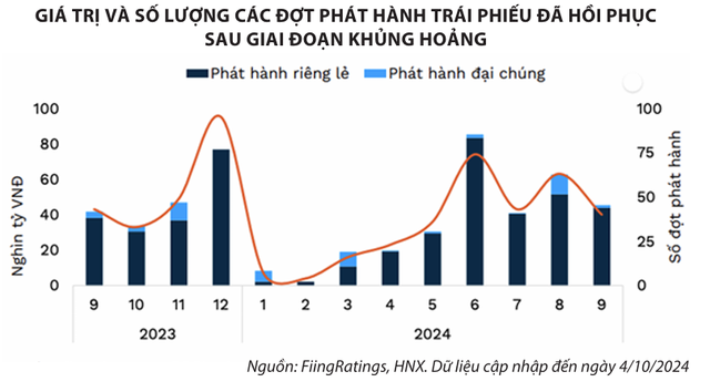Tổng giá trị trái phiếu phát hành mới trong 9 tháng đầu năm 2024 đạt 334.000 tỷ đồng, tương đương cả năm 2023. Hoạt động giao dịch trên thị trường thứ cấp cũng sôi động hơn kể từ khi sàn giao dịch trái phiếu riêng lẻ được triển khai vào tháng 7/2023.