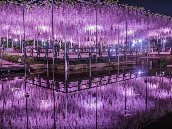 Đặc biệt, du khách có thể chiêm ngưỡng cảnh quan hoa viên Ashikaga lộng lẫy khi về đêm với các dàn hoa tử đằng đều được thắp đèn chiếu sáng.