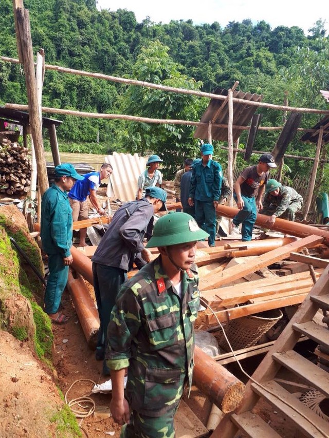 Hình ảnh những ngôi nhà dân tại huyện miền núi Kỳ Sơn, Nghệ An bị lũ cuốn sập khiến nông dân rơi cảnh màn trời chiếu đất.