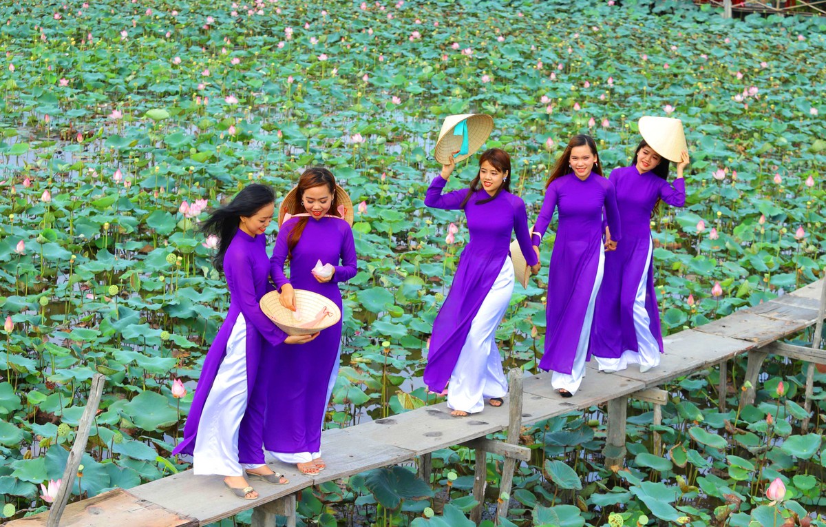Vườn sen Thủ Đức cũng rộn ràng áo dài.