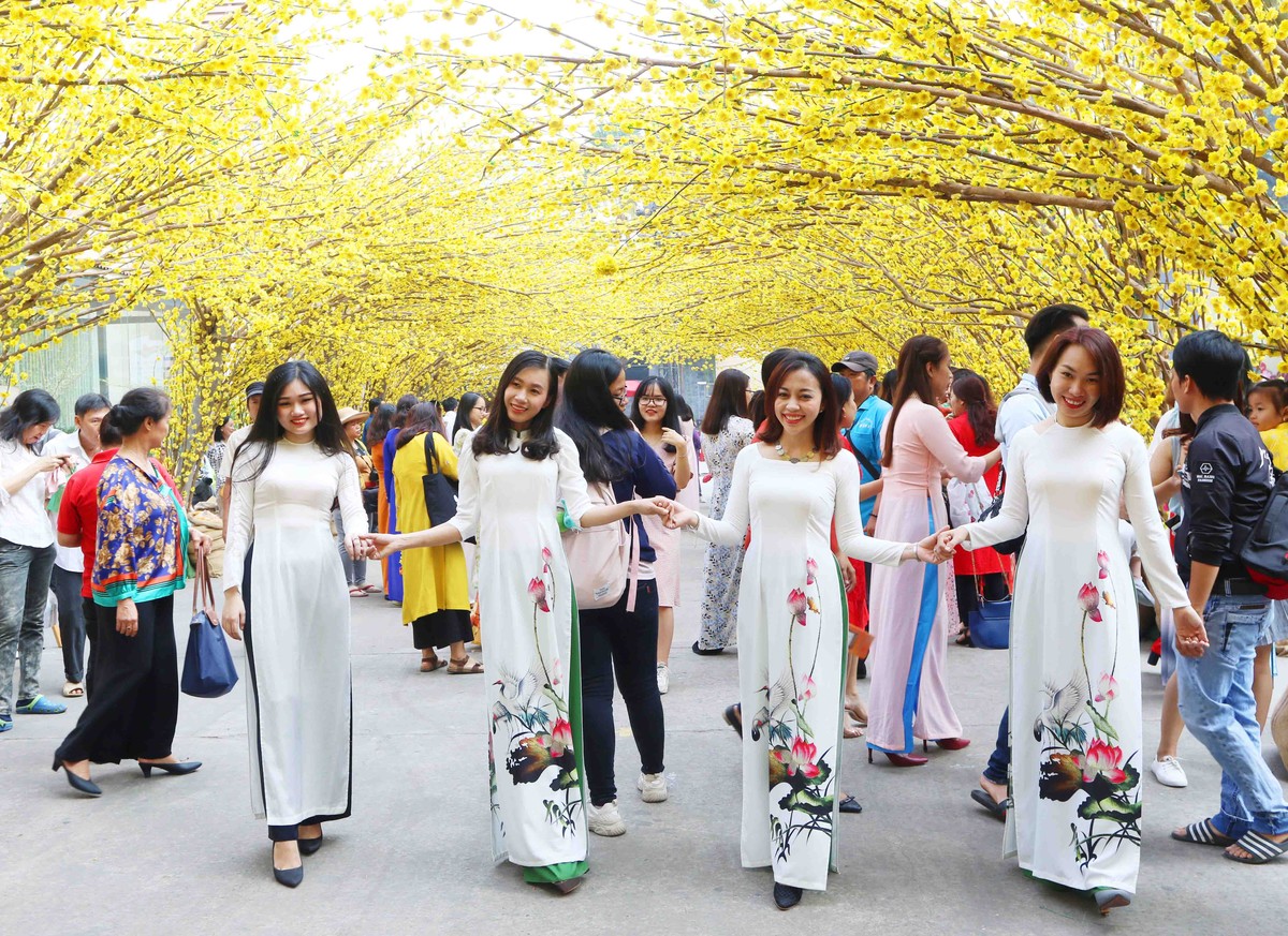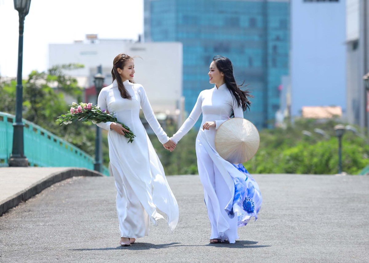 Thướt tha tà áo dài truyền thống trên phố Sài Gòn