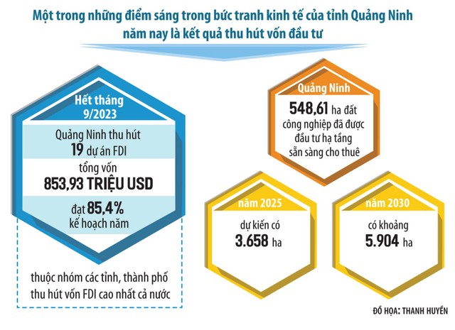 Năm 2023, tỉnh Quảng Ninh chọn chủ đề “Nâng cao hiệu quả thu hút đầu tư và chất lượng đời sống nhân dân”. Trong đó, đề ra mục tiêu thu hút vốn FDI vào khu công nghiệp (KCN), khu kinh tế (KKT) đạt 1,5 tỷ USD; ưu tiên các nhà đầu tư đến từ Nhật Bản, Hàn Quốc, Trung Quốc, châu Âu... Đây là kết quả từ nỗ lực của tỉnh trong cải cách thủ tục hành chính, cải thiện môi trường đầu tư - kinh doanh, đồng hành cùng doanh nghiệp.