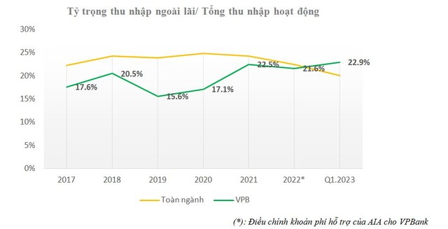 Ngân hàng này đã có chiến lược tập trung khai thác nguồn thu ngoài lãi từ trước đó nhiều năm và đạt được thành công nhất định, khi chứng kiến thu nhập dịch vụ tăng bền vững qua từng năm, vượt trên trung bình ngành từ mức cơ sở thấp của giai đoạn 2017-2018.