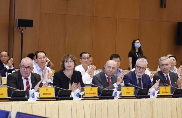Các đại biểu dự hội nghị "Triển khai kế hoạch thực thi Hiệp định thương mại tự do Việt Nam - Liên minh châu Âu (EVFTA)" sáng 6/8.