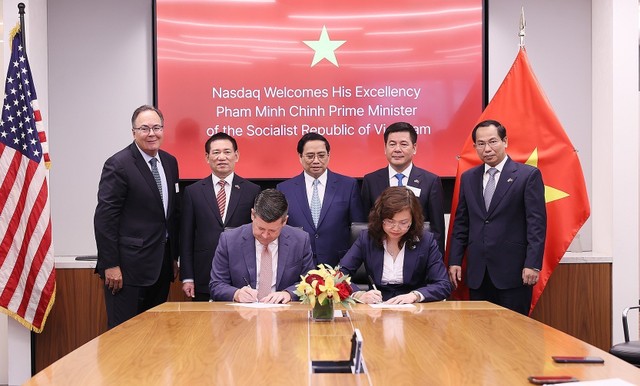 Ngay sau nghi thức rung chuông, dưới sự chứng kiến của Thủ tướng Chính phủ Phạm Minh Chính, Bộ trưởng Bộ Tài chính Hồ Đức Phớc, Bộ trưởng Bộ Công thương Nguyễn Hồng Diên, Chủ nhiệm Nhiệm Ủy ban Tài chính – Ngân sách Quốc hội Lê Quang Mạnh, Đại sứ Việt Nam tại Mỹ Nguyễn Quốc Dũng…, Chủ tịch Ủy ban Chứng khoán Nhà nước Vũ Thị Chân Phương và Phó Chủ tịch Tập đoàn Nasdaq Robert H.McCooey Jr đã ký kết Ý định thư hợp tác giữa Nasdaq với Ủy ban Chứng khoán Nhà nước Việt Nam.