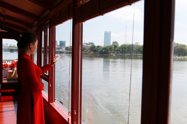 Đó là thuyền rồng thế hệ mới cao cấp 12 chỗ vừa xuất hiện trên sông Hương. Thuyền có chiều dài 17m, rộng 4,6m, được thiết kế theo phong cách kết hợp giữa truyền thống và hiện đại, ưu tiên tạo các không gian tiện nghi cho du khách nhưng vẫn khơi gợi những đường nét kiến trúc truyền thống của mảnh đất cố đô.