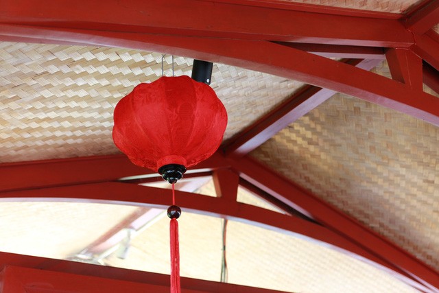 Bên trong con thuyền được trang trí bắt mắt, khoang khách sử dụng từ những vật liệu sẵn có trong tự nhiên.