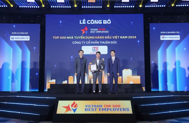 Ngày 12/12 vừa qua, Thuận Đức được vinh danh trong bảng xếp hạng Top 500 Nhà tuyển dụng hàng đầu Việt Nam năm 2024 và Top 10 nơi làm việc Tốt nhất Việt Nam ngành bao bì nhựa (VBW10). Điều này không chỉ là sự công nhận cho những nỗ lực của Thuận Đức, mà còn là minh chứng cho uy tín và sức hấp dẫn của doanh nghiệp đối với nhân tài trong và ngoài nước.