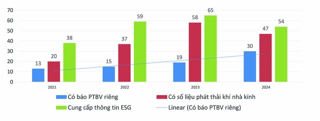 Với các định hướng lớn của Chính phủ, nhận thức của doanh nghiệp đối với vấn đề phát triển bền vững ngày càng cao. Thời gian qua, việc thực hành ESG tại Việt Nam đã ghi nhận những kết quả tích cực. Theo đó, số lượng các doanh nghiệp có báo phát triển bền vững riêng, có số liệu phát thải khí nhà kính, cung cấp thông tin ESG qua các năm tăng ổn định.