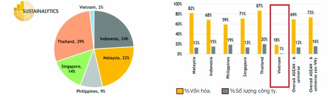 Tuy nhiên, các doanh nghiệp niêm yết trên thị trường chứng khoán Việt Nam có báo cáo phát triển bền vững ít nhất trong khu vực ASEAN. Hiện Việt Nam chỉ có 5 doanh nghiệp (gồm Vinamilk (mã VNM), Vàng bạc đá quý Phú Nhuận (mã PNJ), Ngân hàng Quân đội (MBB), Hòa Phát (mã HPG), Vingroup (mãVIC)) có điểm trên trang Sustainalytics trong tổng số 587 doanh nghiệp, chiếm 69% vốn hóa thị trường ASEAN-6.