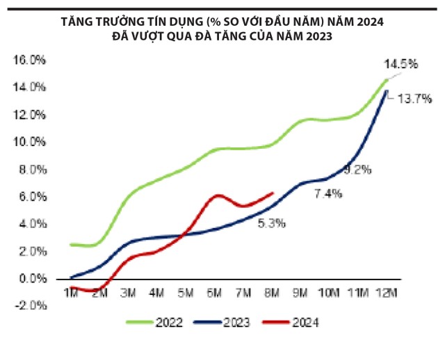 Tuy nhiên, không thể phủ nhận về thực chất, tín dụng vẫn trong xu hướng tăng. Kết quả là tính đến cuối tháng 8, tín dụng đã tăng trưởng xấp xỉ 6,6%, đà tăng đã vượt qua số liệu tín dụng cùng kỳ năm ngoái. Nhìn chung, đà tăng của tín dụng vẫn ổn định và trong xu hướng tích cực.