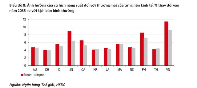 Gia tăng thương mại và dòng vốn FDI do vậy cũng sẽ nâng cao năng suất hơn. Chi phí nhập khẩu các nguyên liệu đầu vào sẽ giảm, nhờ thế sẽ đẩy mạnh sản xuất địa phương. Do đó, HSBC mong đợi sẽ có sự thay đổi trong tính cạnh tranh giữa các lĩnh vực khác nhau.