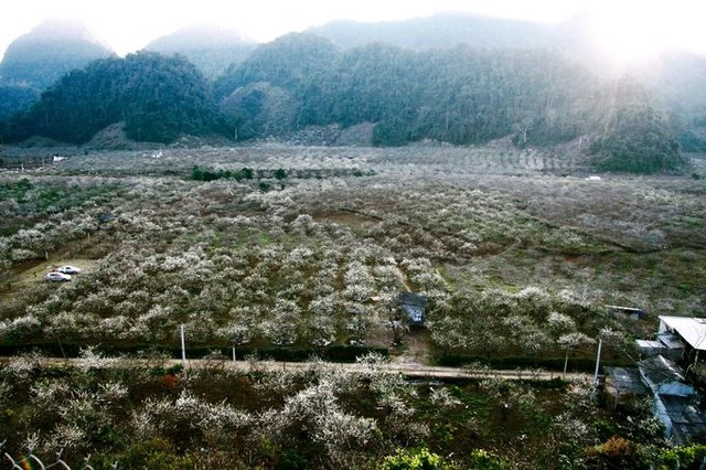 Màu trắng hoa mận, hoa mơ được xem là đặc trưng của Mộc Châu vào mùa xuân và cả hai đều đang nở rộ vào tháng 1 này.