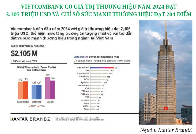 Với vị trí thứ 20, thương hiệu Vietcombank được định giá 2.105 triệu USD, tăng 18% so với năm 2023.