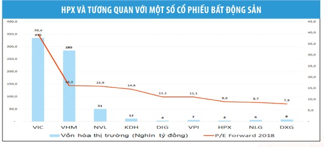 Theo thông tin chính thức, 150 triệu cổ phiếu HPX sẽ có phiên giao dịch đầu tiên trên sàn HOSE vào ngày 24/7 với giá tham chiếu 26.800 đồng/cổ phiếu, tương ứng định giá Công ty ở mức 4.020 tỷ đồng. Tại mức giá tham chiếu chào sàn, hệ số P/E tính trên lợi nhuận kế hoạch năm 2018 (P/E forward) của HPX chưa đến 9 lần, khá hấp dẫn so với mặt bằng chung của nhóm các cổ phiếu bất động sản có cùng quy mô.