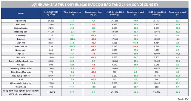 Một số ngân hàng thương mại cổ phần tư nhân có thể đạt mức tăng trưởng vượt trung bình. Nếu kết quả quý III sát với kỳ vọng, ngành ngân hàng có thể trở lại vai trò dẫn dắt VN-Index trong 3 tháng cuối năm. Ngắn hạn, nhóm cổ phiếu ngân hàng vẫn là điểm tựa tâm lý của thị trường.
