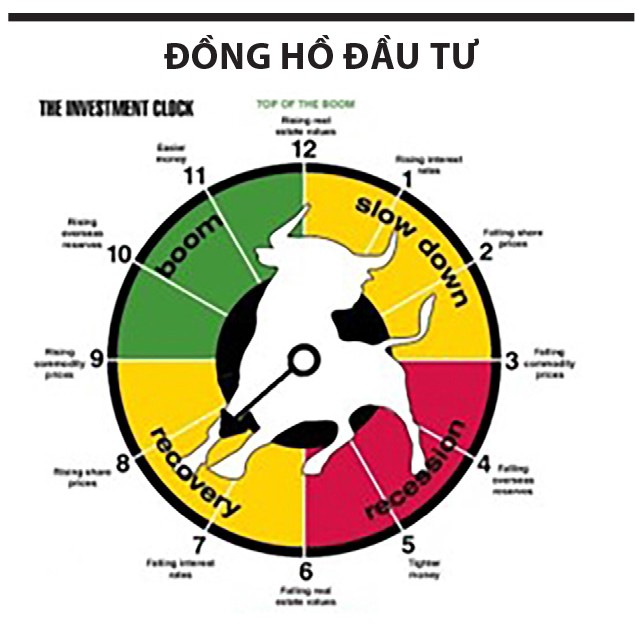 Xét “đồng hồ đầu tư” (Investment Clock, lần đầu xuất hiện trên Báo London’s Evening Standard năm 1937, một công cụ trực quan diễn tả chu kỳ kinh tế từ đáy đến đỉnh, cho thấy các đặc điểm chính của giai đoạn kinh tế để có thể đưa ra lựa chọn và phán đoán trong đầu tư), kinh tế Việt Nam đang ở giai đoạn hồi phục (từ 6 giờ đến 9 giờ). Sau giai đoạn suy thoái với nhiều khó khăn, kinh tế bắt đầu đi lên, các doanh nghiệp dần cải thiện tình hình kinh doanh. Thị trường chứng khoán đã bước vào chu kỳ tăng giá mới khi lãi suất giảm dần, giá hàng hóa cũng tăng trở lại. Theo đó, kinh tế Việt Nam nhiều khả năng đang ở khung 7 - 8 giờ.