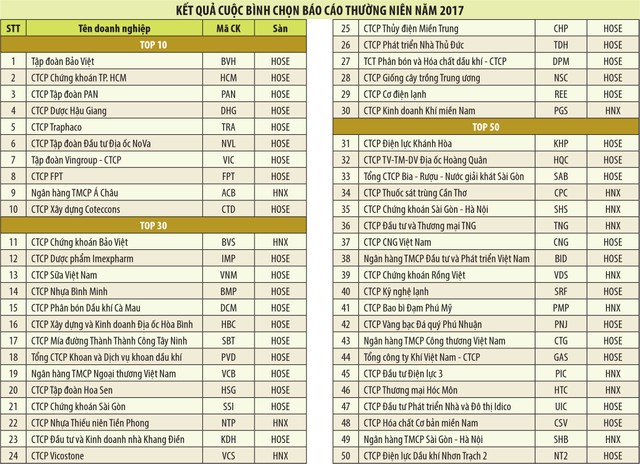 Hội đồng bình chọn đã đánh giá và chọn ra 3 BCTN có nội dung quản trị công ty tốt nhất để trao giải, bao gồm:
