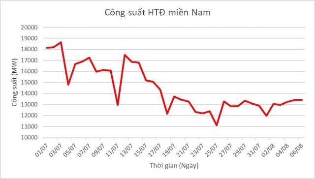 Tuy nhiên khi bắt đầu thực hiện giãn cách xã hội tại 19 tỉnh thành ở miền Nam, kể từ ngày 19/7, thì công suất đỉnh đã giảm xuống còn 13.300 – 13.500 MW, nghĩa là giảm tới 4.000 đến 5.000 MW (tương đương khoảng 29%) so với trước khi giãn cách xã hội.