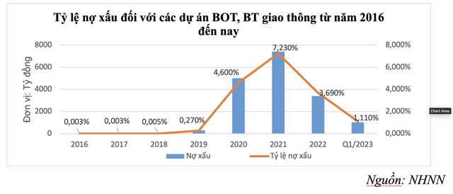Minh chứng cho việc cấp tín dụng tiềm ẩn nhiều rủi ro (do vốn tự có của dự án chiếm tỷ trọng thấp, chỉ khoảng 20-25%, vốn vay lớn) dẫn đến nợ xấu cao, số liệu của NHNN cho biết, năm 2021 ở mức 7,23%, trong đó 6 dự án với tổng dư nợ 12.721 tỷ đồng đã chuyển sang nợ xấu, doanh thu chỉ đạt mức thấp (khoảng 20-30%) so với phương án tài chính tại hợp đồng dự án). Đến 31/3/2023, nợ xấu là 1.019 tỷ đồng, chiếm 1,11% tổng dư nợ tín dụng.