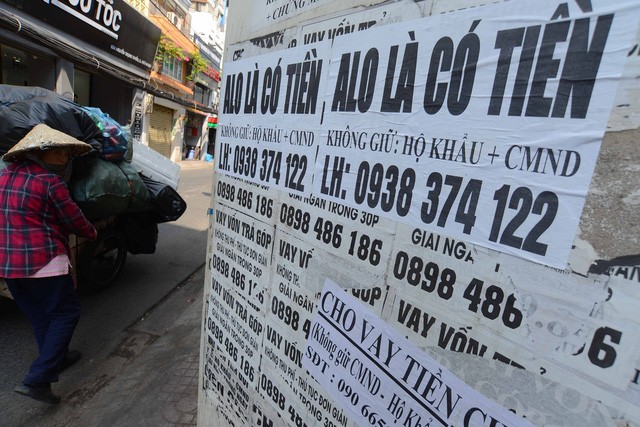 Tín dụng đen tiếp cận người dân qua việc dán các tờ rơi ở cột điện, tường rào khu dân cư... và qua mô hình các công ty cho vay ngang hàng.
