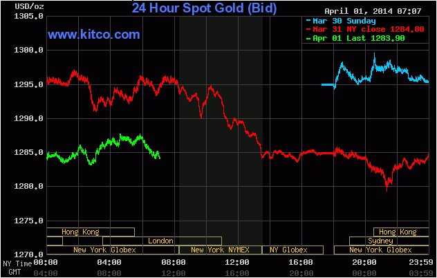 Giá vàng giao ngay đã tăng 0,3% lên 1.287,42 USD/ounce lúc 9h40 sáng trên sàn London. Trước đó, giá đã ở mức thấp 1.278,2 USD trong ngày hôm nay, mức thấp nhất kể từ 11/2. Giá vàng giao tháng 6 tăng lên 1.287,6 USD/ounce trên sàn Comex, Mỹ, nơi khối lượng giao dịch cao hơn 12% so với mức trung bình 100 ngày.